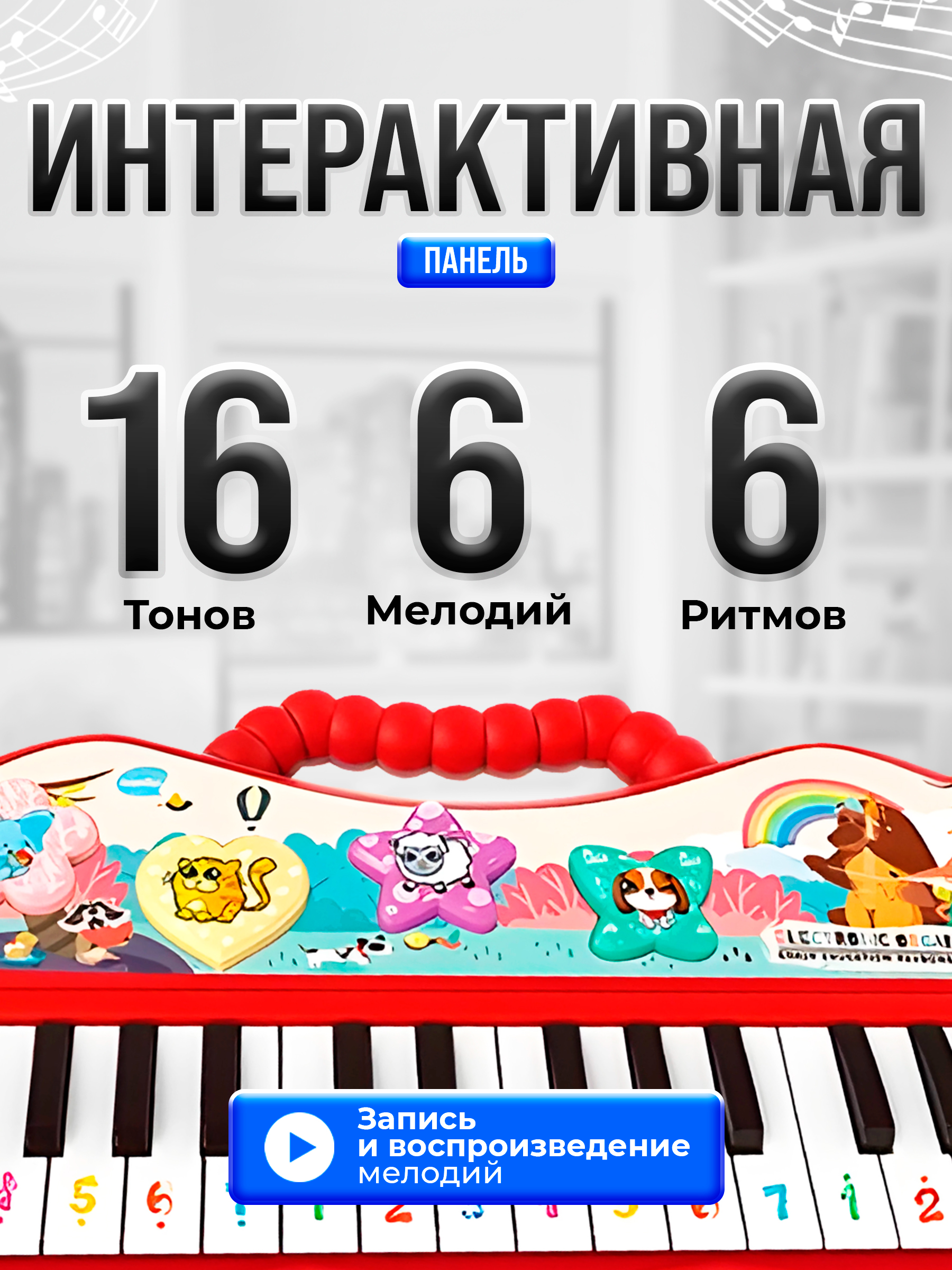 Синтезатор детский имеет компактный размер и удобный дизайн, который позволяет ребенку свободно перемещать игрушку. Клавиши и кнопки подходят для маленьких пальцев, а количество мелодий и настроек ритма позволит ребенку выбрать свою любимую композицию. Детское пианино синтезатор имеет функцию записи и воспроизведения музыки, а также функцию регулировки громкости и темпа. Игрушка прививает первые навыки усидчивости, развивает моторику рук, происходит обучение нотам, развивается слух.