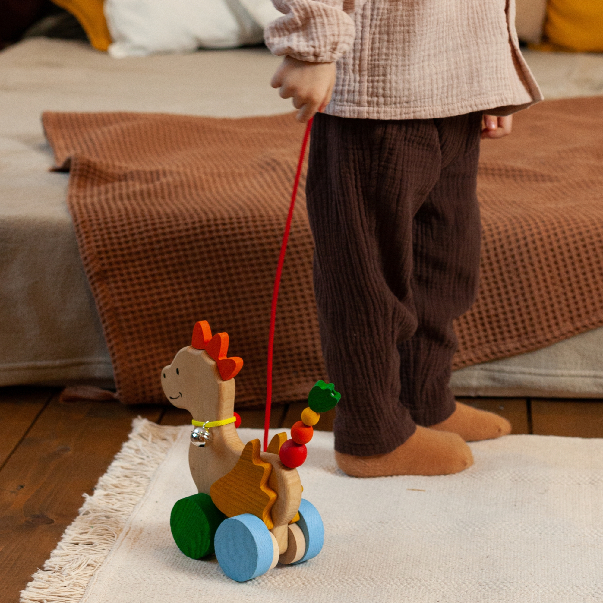 Этот милый дракончик станет верным спутником Вашему малышу дома и на прогулках. Он поможет его всестороннему развитию: научит понимать механизмы движения,обучит терминам назад-вперед, направо-налево;поможет развить координацию и воображение; будет стимулировать ребенка к ходьбе и бегу.