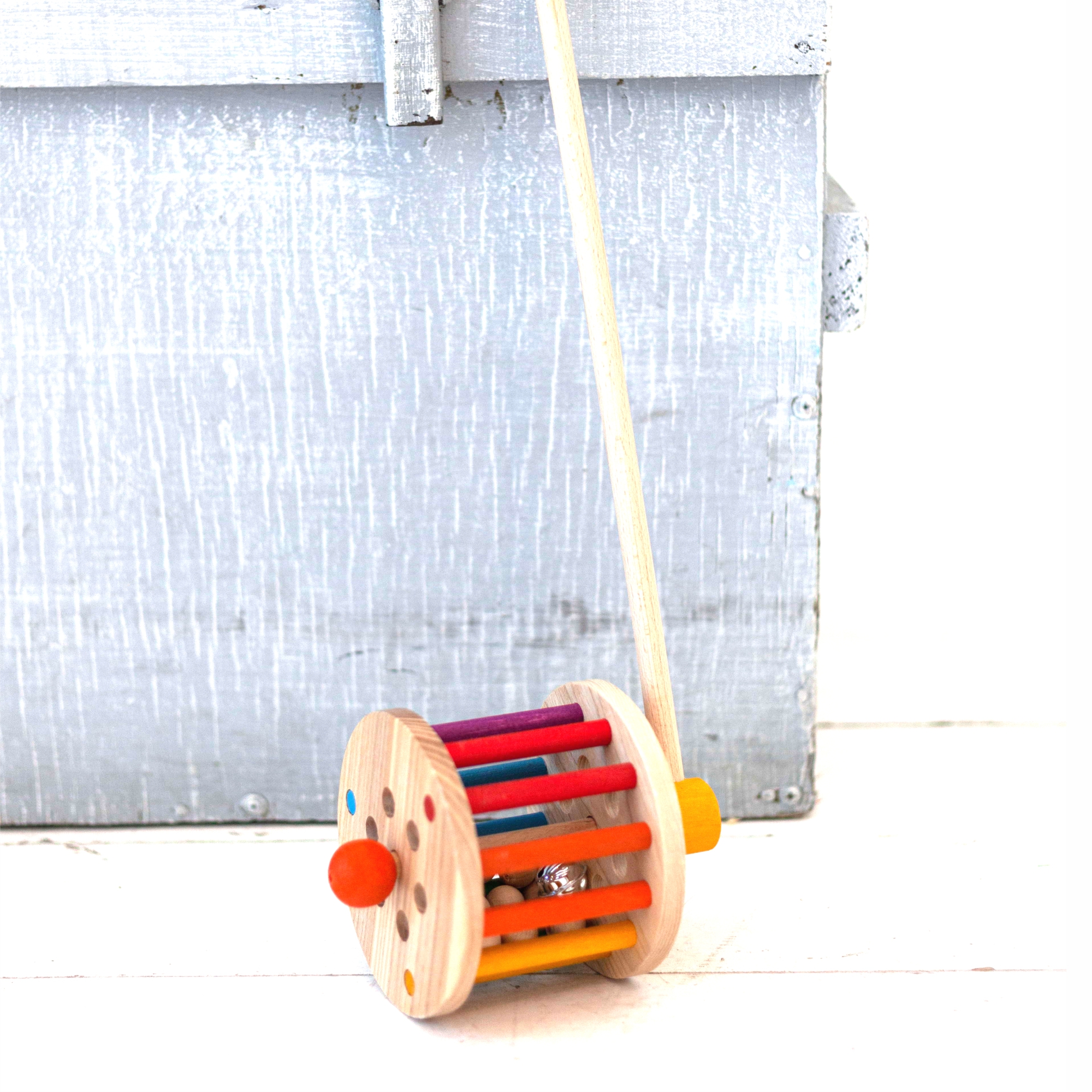 - Отличная каталка, ребенку с годика нравится. Сейчас два года, тоже с удовольствием бегает с ней. Приятные цвета, хорошие краски и качественная обработка дерева. Но не для улицы, я думаю)