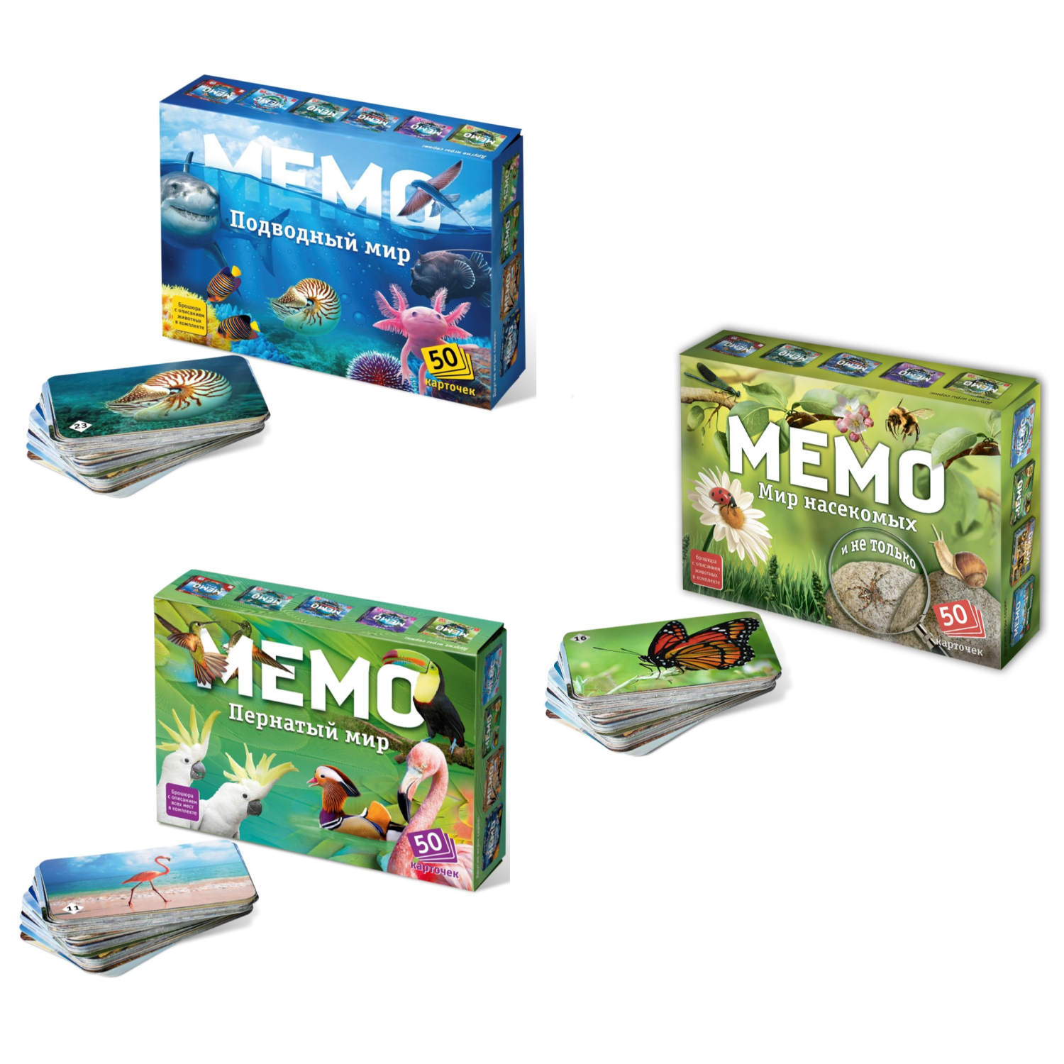 Настольные развивающие игры Нескучные игры Мемо Пернатый мир + Подводный мир + Мир насекомых