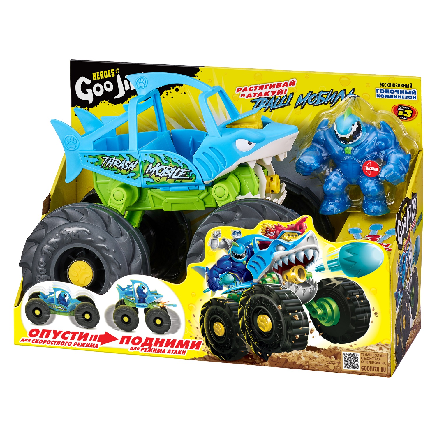 Траш надел свой эксклюзивный гоночный комбинезон и как никогда готов растягиваться в три раза для нанесения урона. Но у таких крутых пацанов должна быть мощная тачка! Траш Мобиль идеально подойдет и заставит злодеев трястись от страха. Посади Траша за руль его Мобиля. Если нужно подкрепление, на заднем сидении есть еще место для одного-двух героев Гуджитсу. Размести 2 ракеты в двери тачки и одну помести в пасть акулы. И гони на полных мощностях, используя Скоростной Режим. Догнав монстров, не медли! Резким движением руки меняй высоту Траш Мобиля для перехода в Режим Атаки и запускай ракету. Бам! И противник побежден!