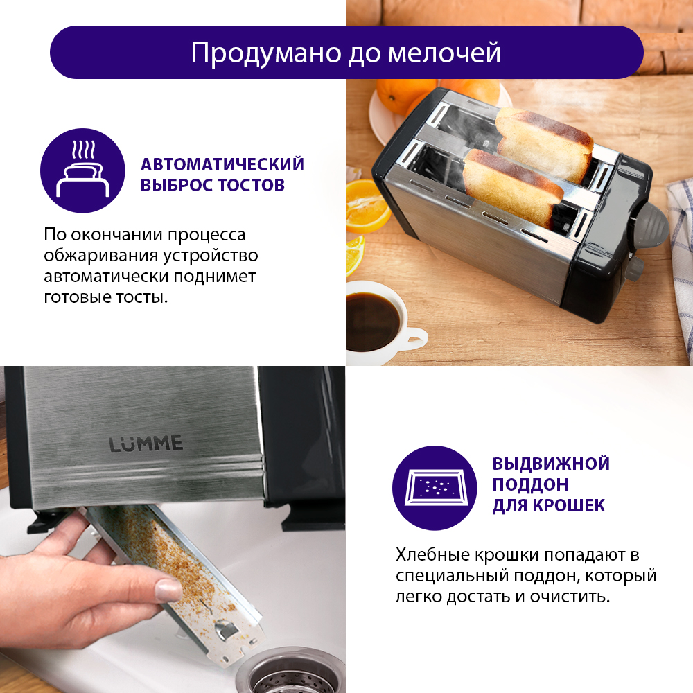 Тостер LUMME LU-1201 дымчатый жемчуг