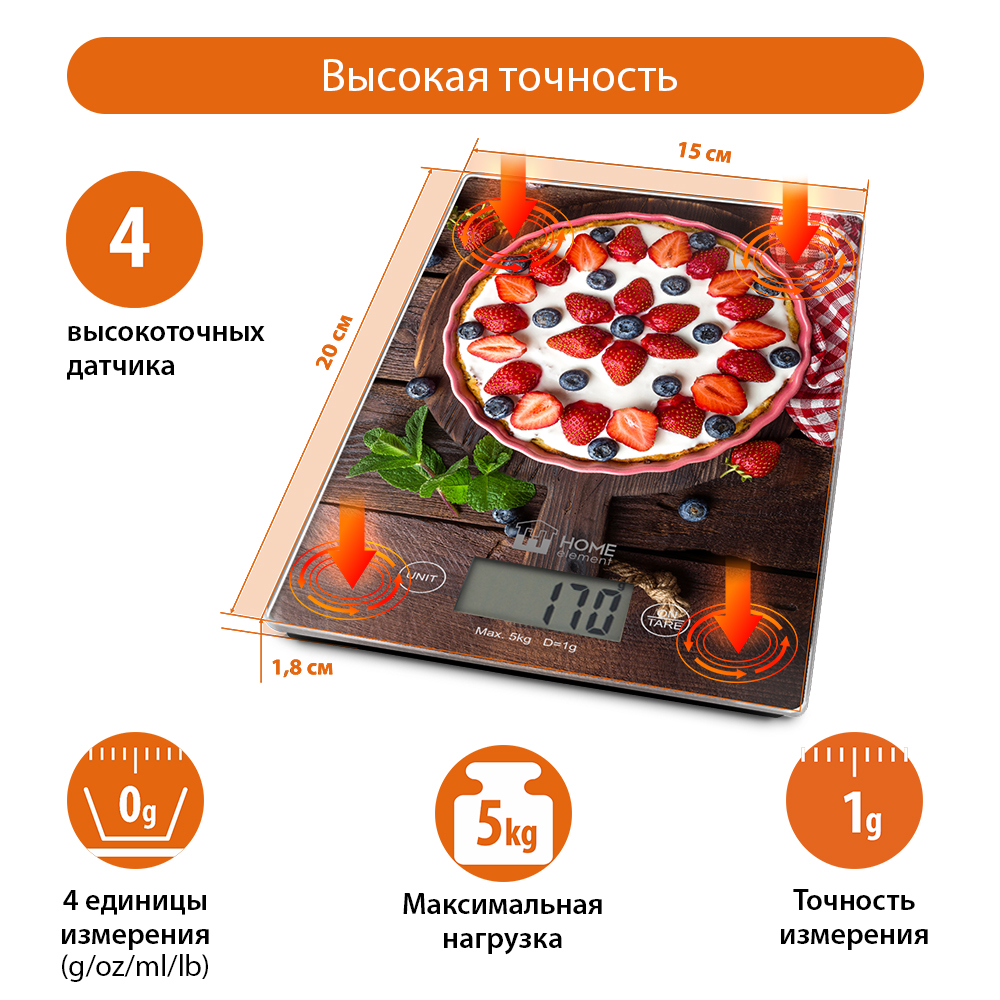 Весы кухонные HOME ELEMENT HE-SC935 сенсор и встроенный термометр ягодный пирог