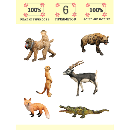 • Фигурки антилопа, гиента, лиса, сурикат, крокодил, обезьяна являются уменьшенной копией реальных животных.