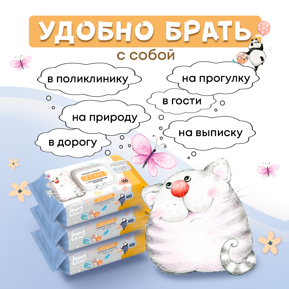 Влажные салфетки детские FRESHLAND Кот с антибактериальным эффектом 1х100 шт