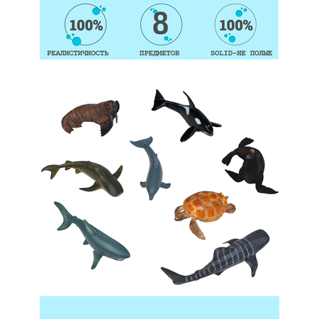 • Фигурки Касатка, 3 акулы, морж, дельфин, черепаха, тюлень являются уменьшенной копией реальных животных.