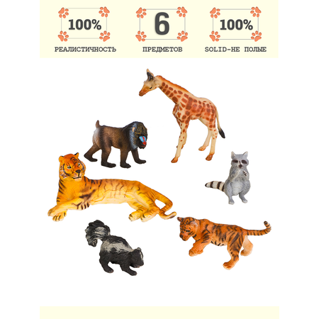 • Фигурки обезьяна, жираф, скунс, енот, тигрица с тигренком являются уменьшенной копией реальных животных.