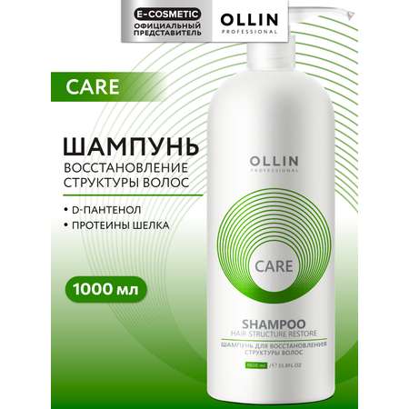 Профессиональный очищающий шампунь 1000 мл OLLIN CARE Restore создан для глубокого восстановления ослабленных, повреждённых сухих, ломких, окрашенных, обесцвеченных и осветлённых волос, нуждающихся в интенсивном уходе. Восстанавливающий шампунь 1 литр подойдет как для брюнеток и темных волос, так и для блондинок и светлых волос, бережно очищает, возвращая волосам мягкость, упругость и естественный блеск. Комплекс с гидролизованным шёлком насыщает волосы аминокислотами, улучшает их структуру и предотвращает ломкость. Пряди становятся плотнее, эластичнее и более послушными при укладке. Провитамин B5 пантенол активно удерживает влагу, делая волосы гладкими и блестящими по всей длине. Увлажняющий шампунь женский и мужской подходит для жирной, сухой и нормальной кожи головы, помогает сохранить оптимальный баланс, защищая от пересушивания и воздействия горячего воздуха при укладке. Глицерин смягчает и придаёт шелковистость, а полимерный комплекс облегчает расчёсывание и уменьшает спутывание. Регулярное применение поддерживает здоровье волос, делая их заметно крепкими. Укрепляющий шампунь для прямых, кудрявых, пушистых, вьющихся волос освежает кожу головы, волосы становятся эластичными и сияющими Нежный аромат оставляет ощущение чистоты и свежести на весь день. Уходовая косметика для волос отличное средство, которое возвращает волосам силу и ухоженный вид.