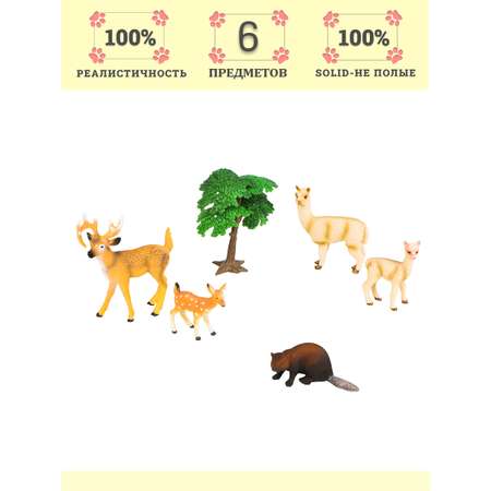 • Фигурки бобер, лама с детенышем, олень с олененком являются уменьшенной копией реальных животных.