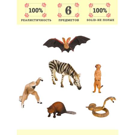 • Фигурки зебра, летучая мышь, змея, сурикат, бобер, обезьяна являются уменьшенной копией реальных животных.