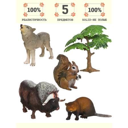 • Фигурки овцебык, бобер, волк, белка являются уменьшенной копией реальных животных.