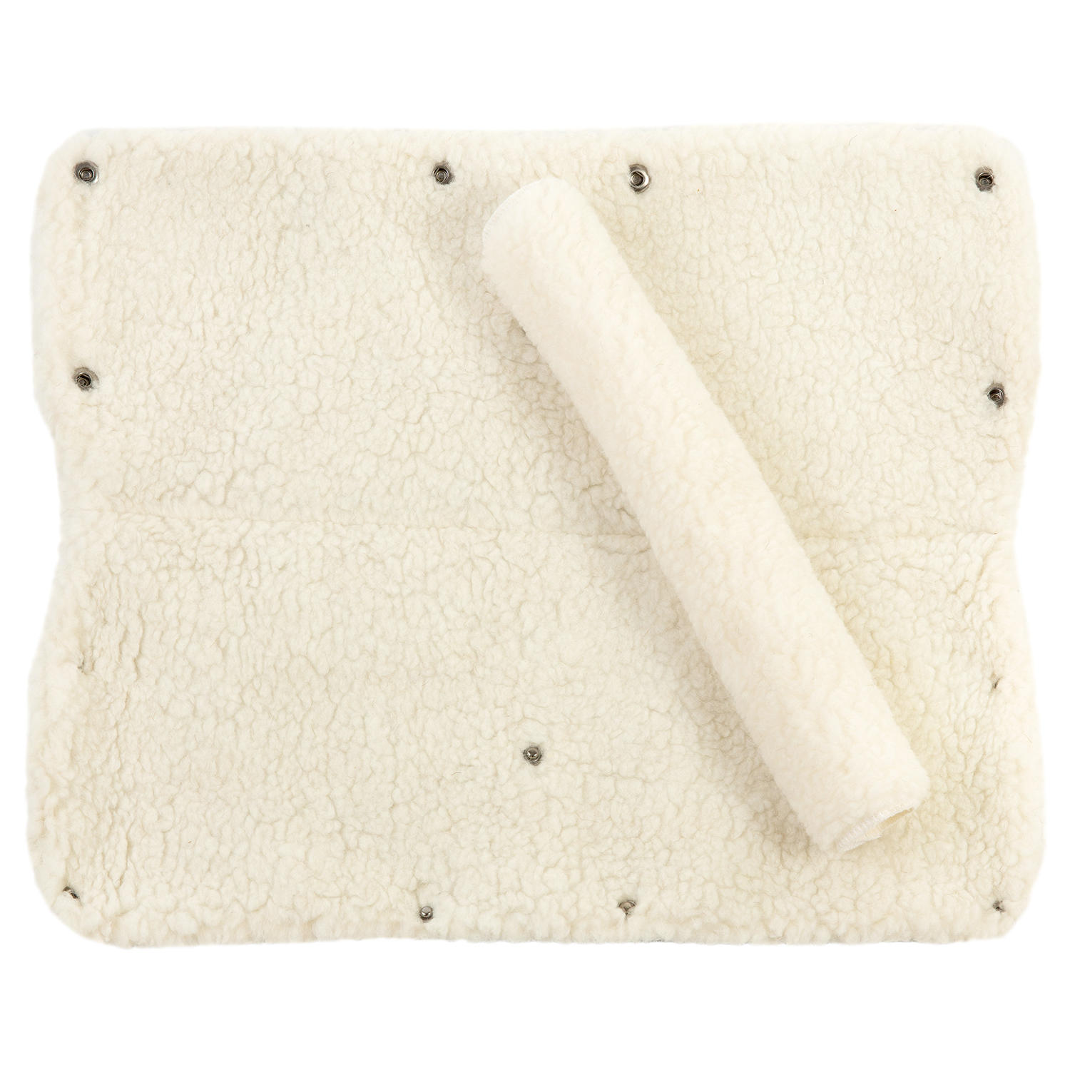 Муфта для рук может также использоваться в развернутом виде в качестве подстилки в коляску, санки или на скамейку. Оплетка не вшита в муфту, что позволяет использовать ее отдельно или в комплекте с муфтой.