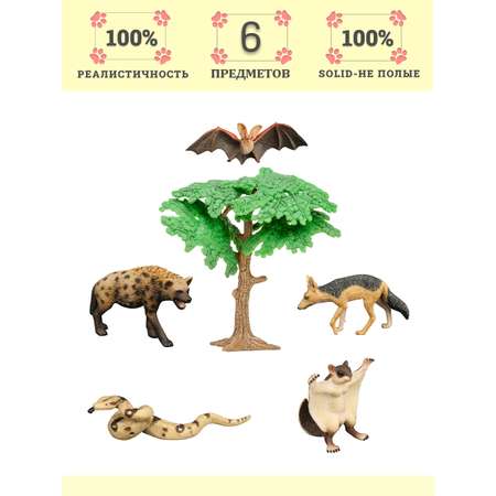 • Фигурки белка-летяга, шакал, летучая мышь, змея, гиена являются уменьшенной копией реальных животных.