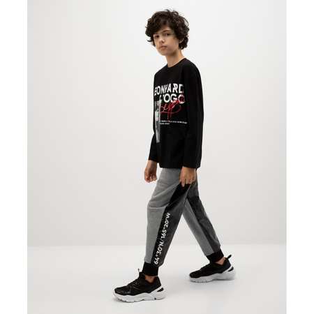 Трикотажные брюки для мальчика из футера - привычный атрибут одежды для свободного времени! Модель построена на сочетании двух фактур: футера с начесом в один слой спереди и футера, усиленного дополнительным слоем из глянцевой плащовки сзади. Благодаря контрастной комбинации материалов брюки для мальчика выглядят по-новому, привлекая остротой и свежестью дизайнерского решения. Кроме того, они очень практичны, что важно для прогулок в дождливые дни. брюки для мальчика имеют карманы на литых молниях, создающих удобство в эксплуатации, а также шнур-утяжку с пластиковыми наконечниками для регулировки пояса. В оформлении модели использованы шрифтовые принты. ДЛИНА: 140 - 80,0см; 146 - 84,1см; 152-88,3см; 158-91,9см; 164-96,1см; 170-100,2см .