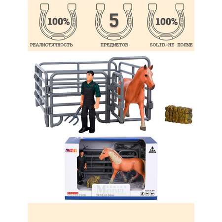 • Фигурки Авелинская лошадь, фермер, ограждение, вилы, сено являются уменьшенной копией реальных животных.