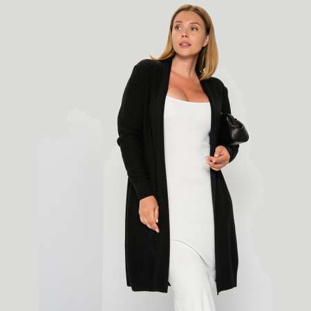 Кардиган женский вязанный свободного кроя, с длинными рукавами. Кардиган связан ажурной вязкой из хлопковой пряжи.