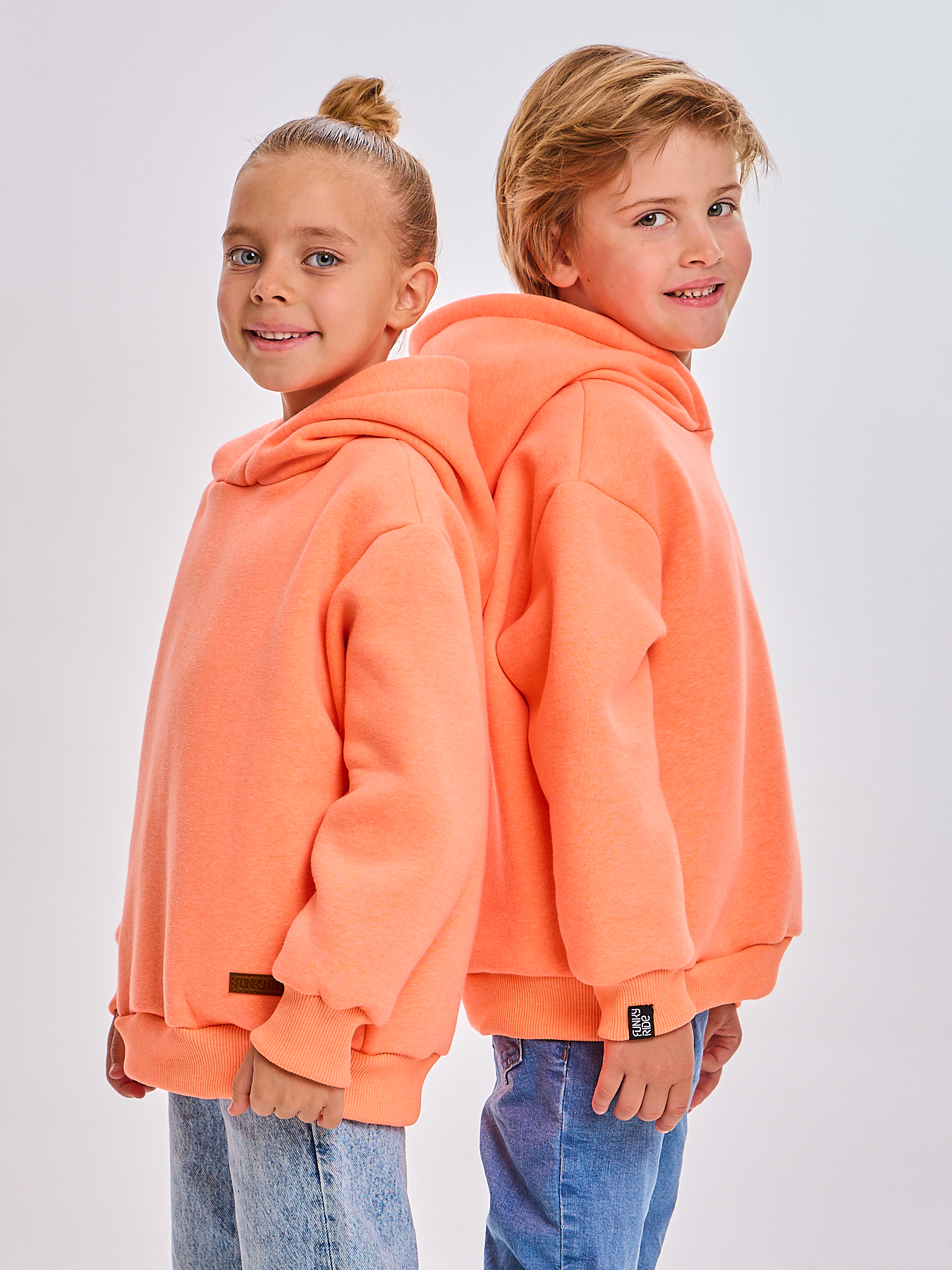 Худи для подростка с капюшоном - яркое, стильное и очень теплое! Худи утеплённый унисекс (для девочки или для мальчика) выполнена из премиального футера ярко-неонового цвета 3-х нитка с начесом. Основное преимущество худи для детей - это свободный крой, оверсайз, капюшон, карманы кенгуру и дополнительные шнурки для регулировки капюшона. Высокое содержание хлопка позволяет материалу дышать, сохранять тепло и поглощать влагу, а волокна полиэстера не дадут толстовке потерять форму. Детская кофта оверсайз рассчитана для теплой осени и весны, прохладного лета и для зимы в качестве новогоднего домашнего джемпера. В детском свитшоте можно не только заниматься спортом, но и надевать его на прогулку, для активного отдыха, в школу, в детский сад или носить дома, как домашнюю одежду. Благодаря начесу детская толстовка объёмнее чем толстовка из футера без начеса, но гораздо теплее. Теплая, мягкая олимпийка из футера с начесом отлично дополнит гардероб. Толстовку с капюшоном и длинными рукавами выбирают ценители комфорта и непринуждённости. Свитшот с капюшоном для ребенка - универсальная вещь в гардеробе! Теплая толстовка для мальчика и девочки с капюшоном утепленная из футера с начесом на флисе