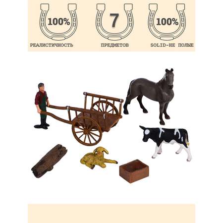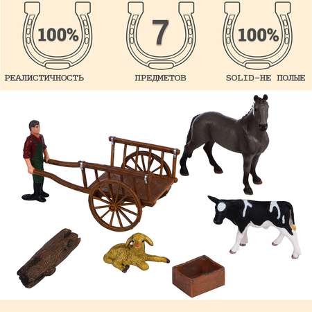 • Фигурки Лошадь, овца, теленок, фермер, телега являются уменьшенной копией реальных животных.