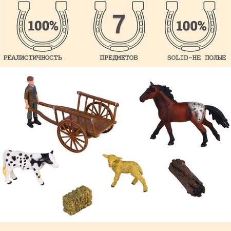 • Фигурки Лошадь, овца, теленок, фермер, телега являются уменьшенной копией реальных животных.