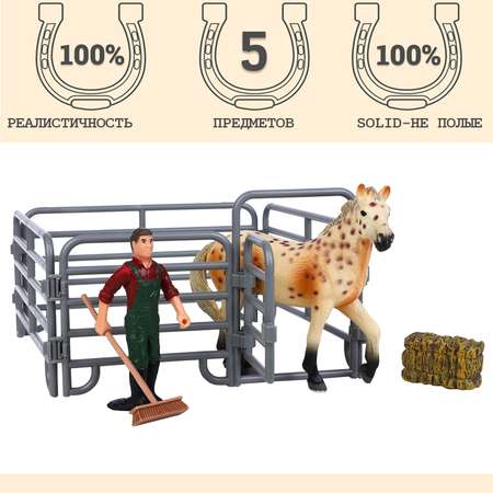 • Фигурки Лошадь, фермер, ограждение, стог сена являются уменьшенной копией реальных животных.
