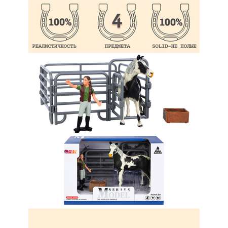 • Фигурки Лошадь, наездница, ограждение, кормушка являются уменьшенной копией реальных животных.