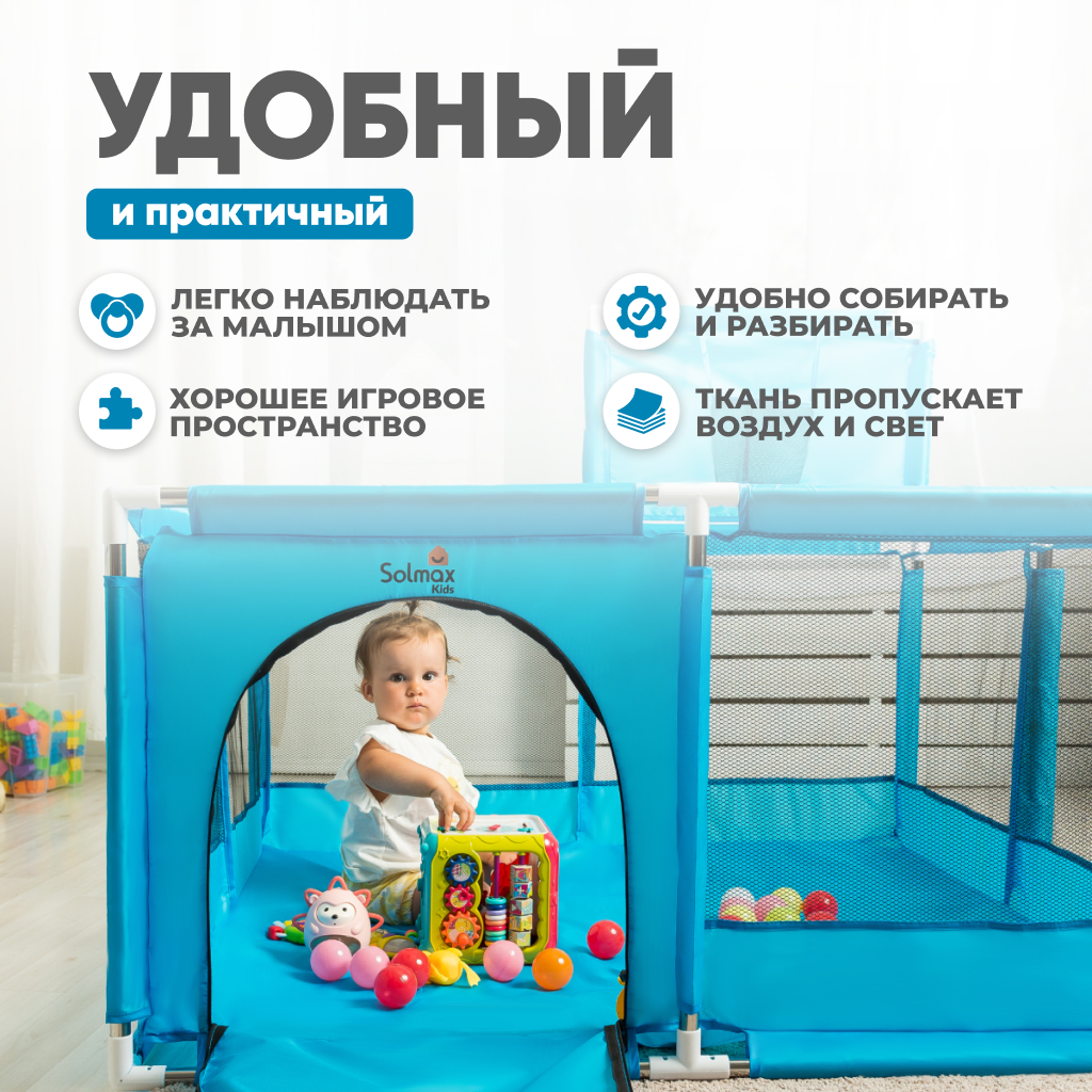Детский игровой манеж Solmax с баскетбольным кольцом и мячиками 30 шт синий
