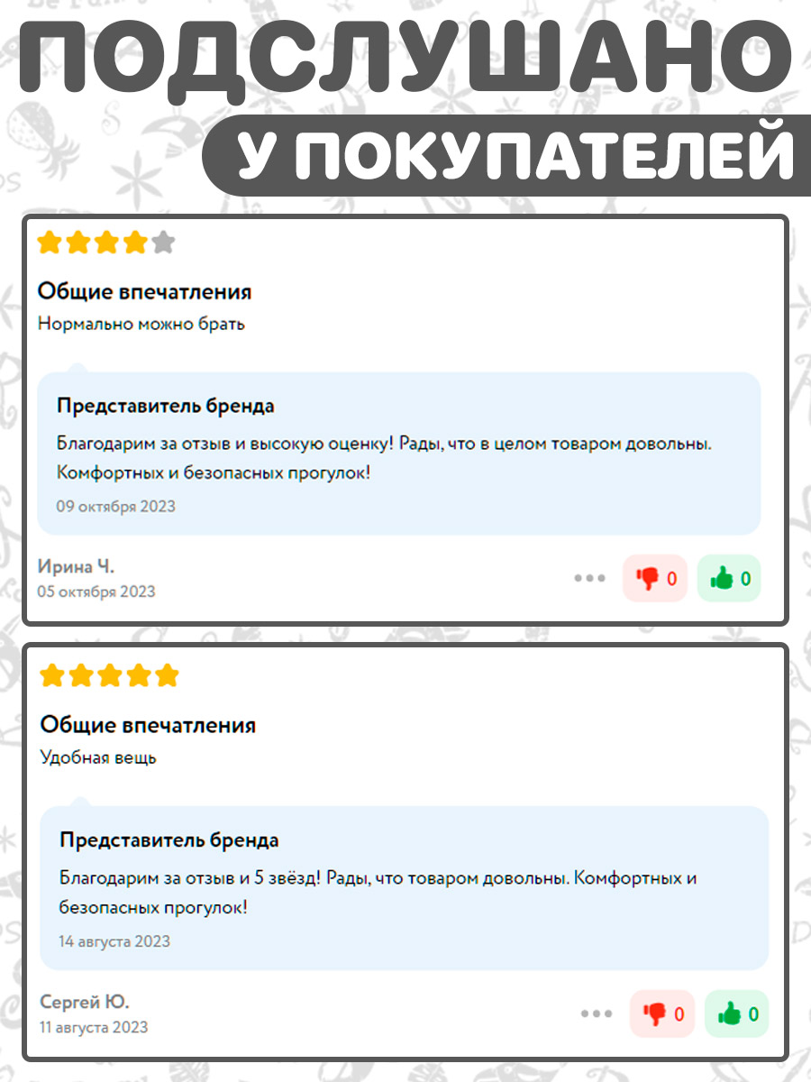 Благодарим за отзыв и 5 звёзд! Рады, что товаром довольны. Комфортных и безопасных прогулок!