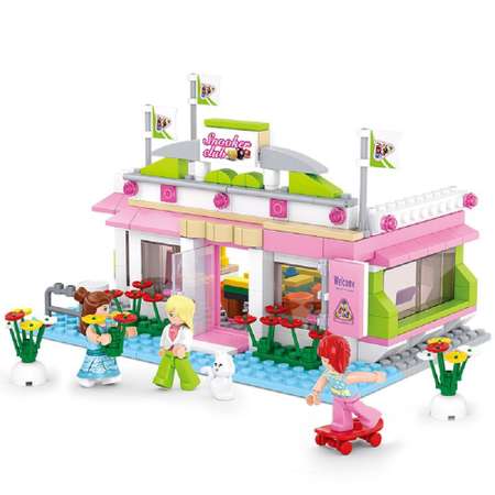 Конструктор SLUBAN Розовая мечта. Бильярдный клуб. фигурки людей кошка 289 деталей