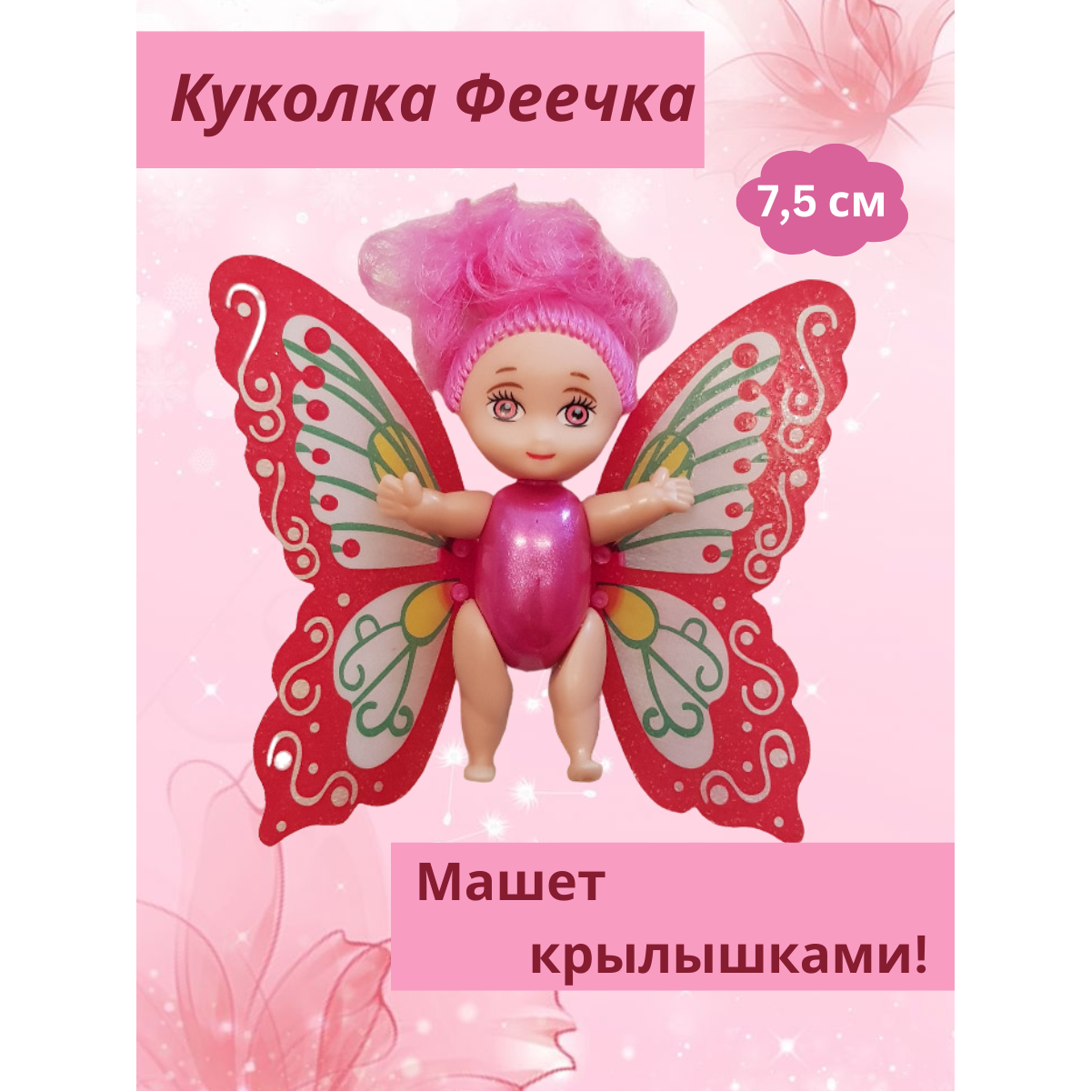 Мини кукла подвижная EstaBella Фея с машущими крылышками 7.5 см розовая