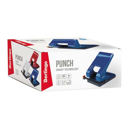 Дырокол энергосберегающий Berlingo Smart Technology 45 л металлический с фиксатором синий с линейкой