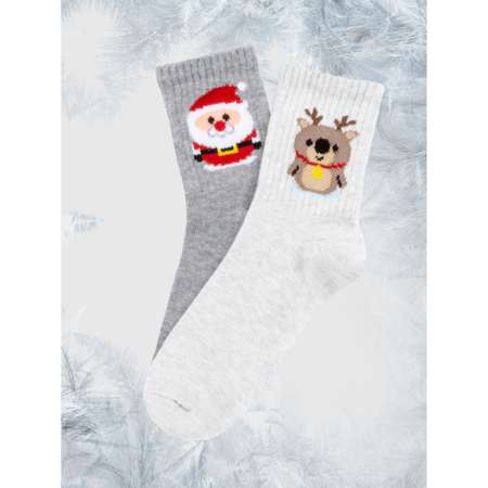 В комплекте 2 пары носков для девочки и мальчика с новогодними рисунками.