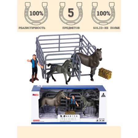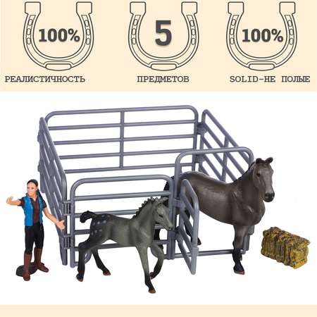 • Фигурки Лошадь и жеребенок, наездница, ограждение являются уменьшенной копией реальных животных.