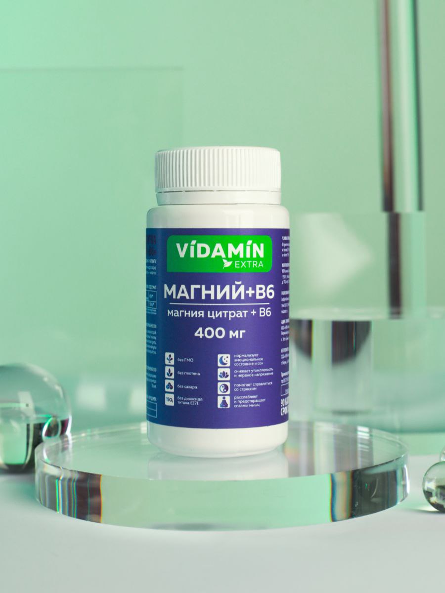 Магния цитрат VIDAMIN EXTRA - это органическая легкоусвояемая форма магния. Подходит для взрослых и детей старше 14 лет.
