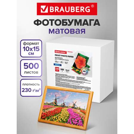 "Матовая односторонняя фотобумага BRAUBERG подходит для всех типов струйных принтеров. Незаменима для печати рекламных материалов, текста, портфолио и фотопортретов. Напечатанное изображение не бликует, а тона имеют бархатистую глубину.