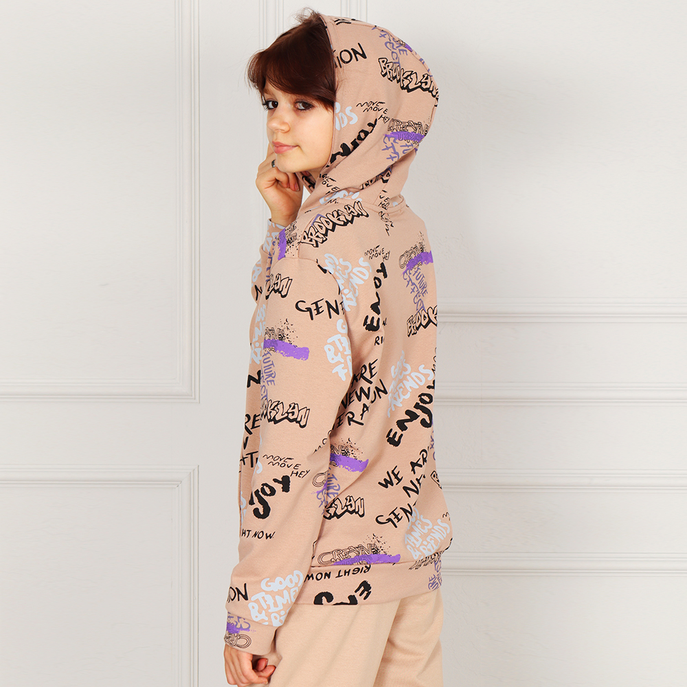 Худи для девочек ,изготовлены на фабрике Хоум Стайл из высококачественного набивного трикотажного полотна (футер без начеса), с капюшоном. Рукав втачной, длинный. Низ рукава и низ худи на манжете. На полочке удобный накладной карман-кенгуру. Спинка цельнокроеная. Худи без принта. Стильное худи прекрасно впишется в повседневный и спортивный гардероб вашего ребёнка.