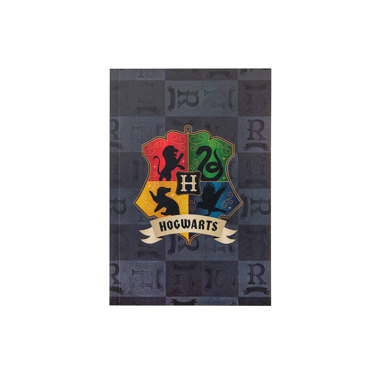 - Дизайн в темных цветах с ярким красочным изображением герба Хогвартс.