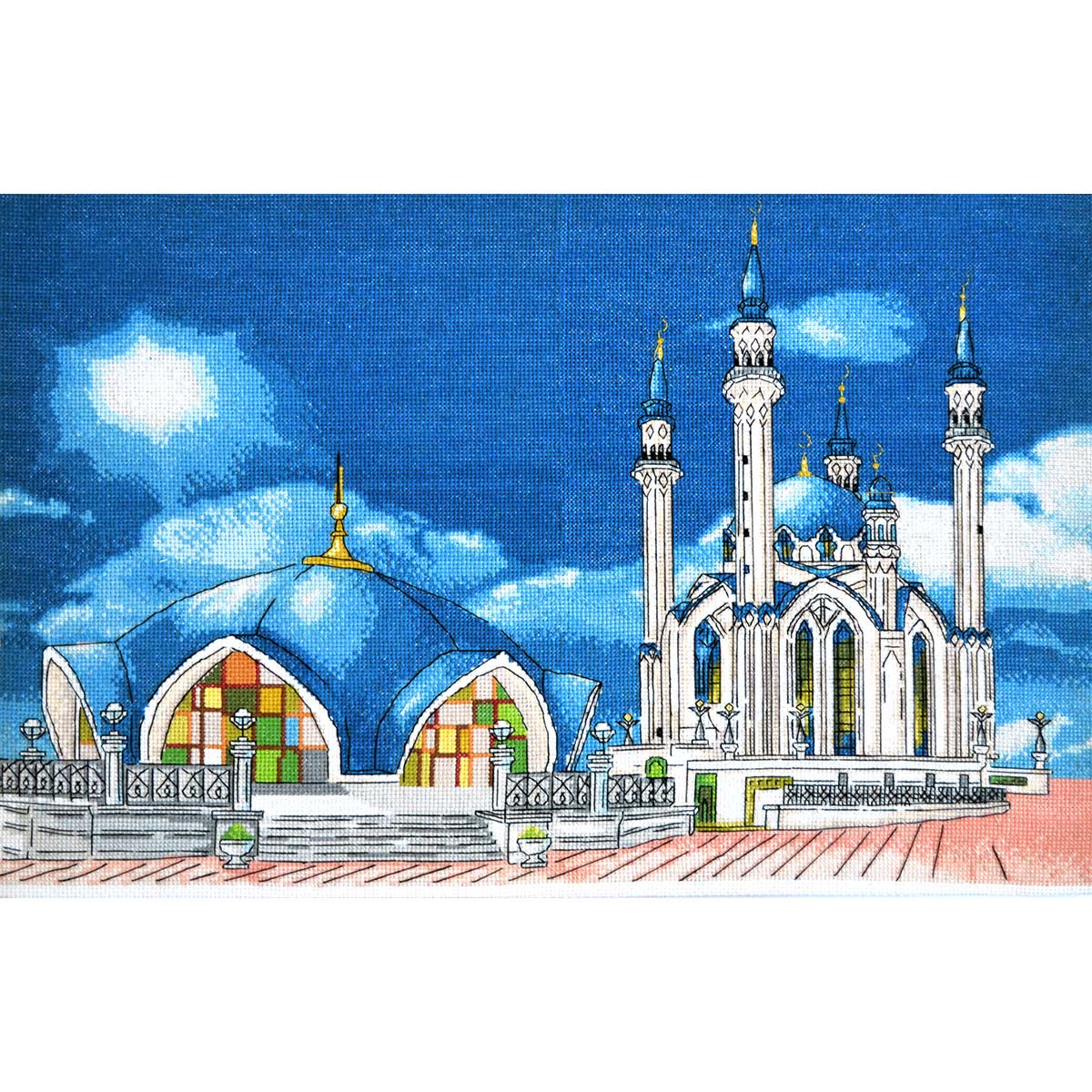 Для вышивания счетным крестом. Кул Шариф – красивейшая мечеть России. Этот архитектурный комплекс привлекает к себе внимание белоснежным фасадом, величественным силуэтом, изящными витражными окнами, продуманным и богатым убранством. Мечеть построена в 2005 году на месте легендарного религиозного и просветительского центра Казанского ханства, который был разрушен в 1552 году. На картине – здание мечети вместе с главным павильоном.