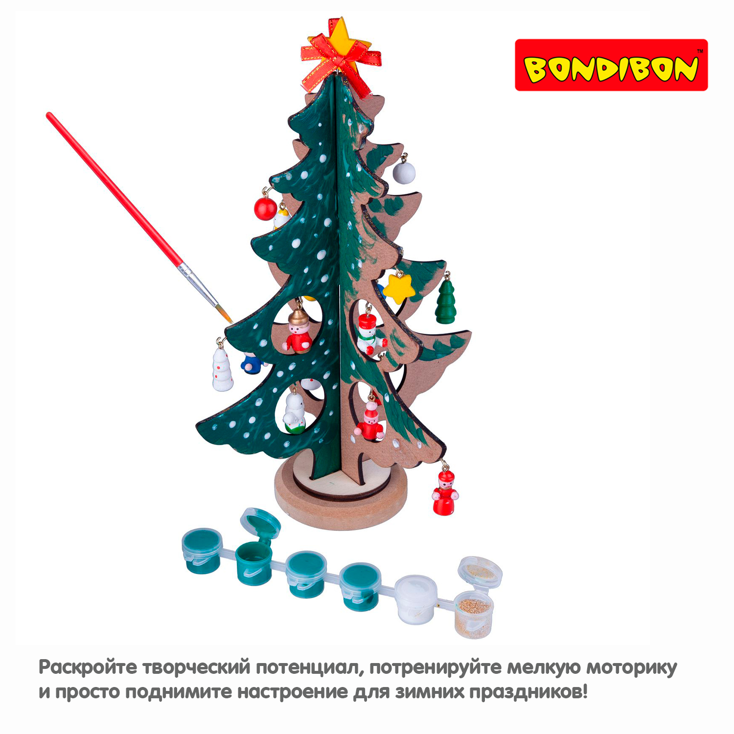 Набор для творчества НОВОГОДНЯЯ ЕЛОЧКА РАСКРАСКА С ИГРУШКАМИ от Bondibon – это все необходимое для создания своими руками оригинального новогоднего сувенира.