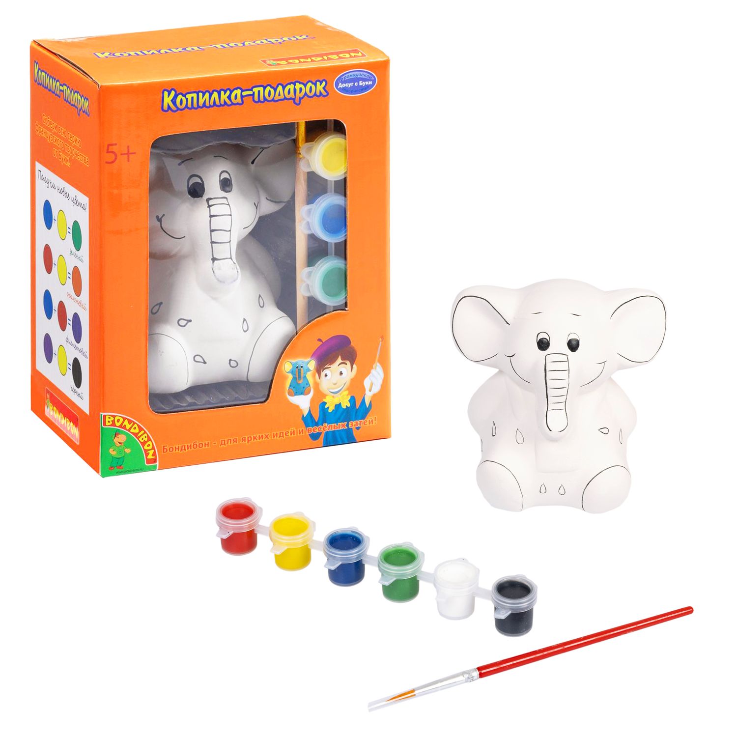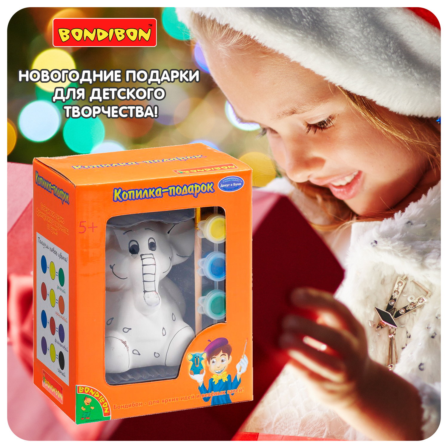 Набор для росписи по керамике КОПИЛКА-ПОДАРОК СЛОНЕНОК серии Досуг с Буки от Бондибон выбирают в качестве подарка для детей на утренник в детском саду и начальной школе.