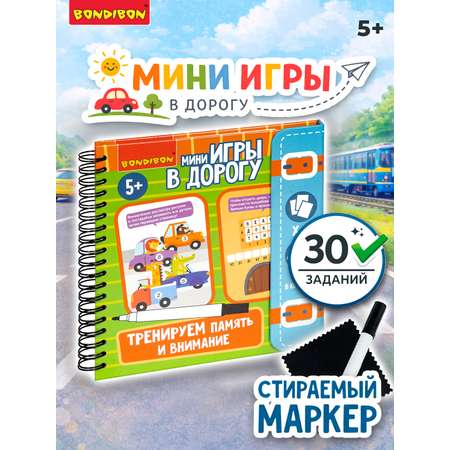 Мини игра в дорогу Тренируем память и внимание от Bondibon — это уникальный игровой набор для детей, который станет отличным инструментом для развития ключевых навыков у малышей. Каждая карточка содержит интересные задания, направленные на развитие внимания, логического мышления и слуховое восприятие. Настолка помогает ребенку учиться анализировать, сравнивать и принимать решения. Развивашки пиши стирай полезны ребенку, как отличный методический материал для тренировки iq мозга, фантазии и памяти. Развивающие игрушки для детей – это интересный подарок на день рождения, новый год, 8 марта или 23 февраля. А также полезный сюрприз на выпускной в детский сад или школу. Выберите любое из 30 заданий. Внимательно рассмотрите все предметы на карточке, проговорите их названия, разложите их по группам по общим признакам, попробуйте прорисовать какие-то детали. Многоразовые карточки можно использовать снова и снова, ведь маркер с легкостью стирается при помощи салфетки! Красочная книжка головоломка с веселыми заданиями, превращает процесс обучения в увлекательное развлечение. В комплекте: книга на магните, 30 карточек с задачками, маркер, салфетка. Предназначен детям от 5 лет. Это умный тренажер для развития интеллекта и творческих способностей ребенка. Он отвлекает от гаджетов, улучшает логику, концентрацию и усидчивость. Пособие с картинками можно использовать как нейротренажер, дидактические материалы, тренажер для подготовки к школе. Компактный формат, позволяет брать дорожную игру в путешествие, что делает ее удобным спутником в машине, самолете или поезде. Игровой набор подходит ученикам начальной школы, дошкольникам для занятий дома на каникулах или в детском садике. Логические настольные игры такого типа пользуются популярностью за счет их пользы и увлеченности. В коллекции товаров от Бондибон представлены детские обучающие и познавательные игрушки для девочек и мальчиков, крутые необычные развивалки для подростков, популярные настолки для всей семьи!