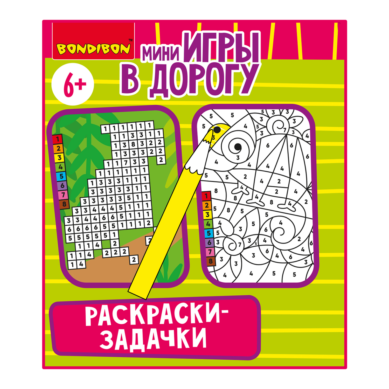 Мини игра в дорогу Раскраски задачки от Bondibon — это уникальный игровой набор для детей с цветными карандашами дополнеными несложными арифметическими действиями, который станет отличным инструментом для развития ключевых навыков у малышей. Каждая карточка содержит интересные задания, направленные на развитие логического мышления, внимания и мелкой моторики. Настолка раскраска помогает ребенку учиться анализировать и формирует первичные представления об арифметике. Развивашки полезны ребенку, как отличный методический материал для тренировки iq мозга, цветовосприятия и пригодится для подготовке к школе. Развивающие игрушки для детей – это интересный подарок на день рождения, новый год, 8 марта или 23 февраля. А также полезный сюрприз на выпускной в детский сад или школу. Выберите любое из 24 заданий. Цвета в которых закодированы цифрами и простыми математическими примерами на сложение и вычитание. Вычислите цвет и закрасьте весь рисунок. Красочная книжка головоломка с веселыми разукрашками превращает процесс обучения в увлекательное развлечение и творчество. В комплекте: книга на магните, 24 задания на картонных листах, 8 цветных карандашей. Предназначен детям от 6 лет. Это умный тренажер для развития интеллекта и творческих способностей ребенка. Он отвлекает от гаджетов, помогает развивать логику, концентрацию и усидчивость. Пособие с картинками можно использовать как нейротренажер, дидактические материалы, тренажер для подготовки к школе. Компактный формат позволяет брать дорожную игру в путешествие, что делает ее удобным спутником в машине, самолете или поезде. Игровой набор подходит ученикам начальной школы, дошкольникам для занятий дома на каникулах или в детском садике. Логические настольные игры такого типа пользуются популярностью за счет их пользы и увлеченности. В коллекции товаров от Бондибон представлены детские обучающие и познавательные игрушки для девочек и мальчиков, крутые необычные развивалки для подростков, популярные настолки для всей семьи!