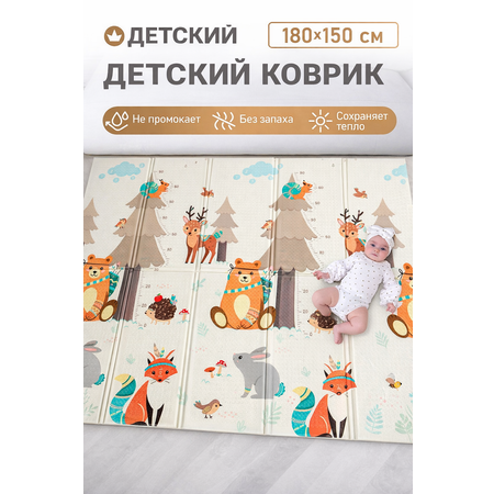 Детский коврик MIKMEL складной игровой развивающий двусторонний для ползания 180х150 см Лес/Радуги