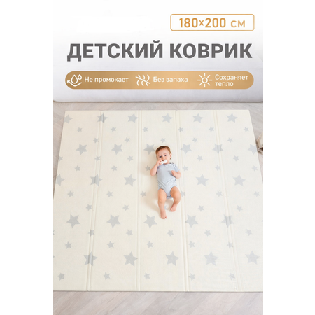 Детский коврик MIKMEL складной игровой развивающий двусторонний для ползания 180х200 см Медвежата Звездочки