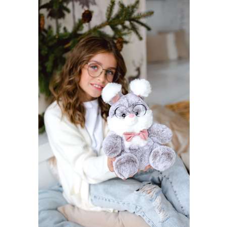 Этот кролик может стать верным спутником игр дома или на улице. Его можно взять с собой в садик или школу как талисман удачи перед важными событиями: олимпиадой или первым учебным днем. Образ умняши подчеркивается стильными очками — они добавляют индивидуальности вашему новому другу.