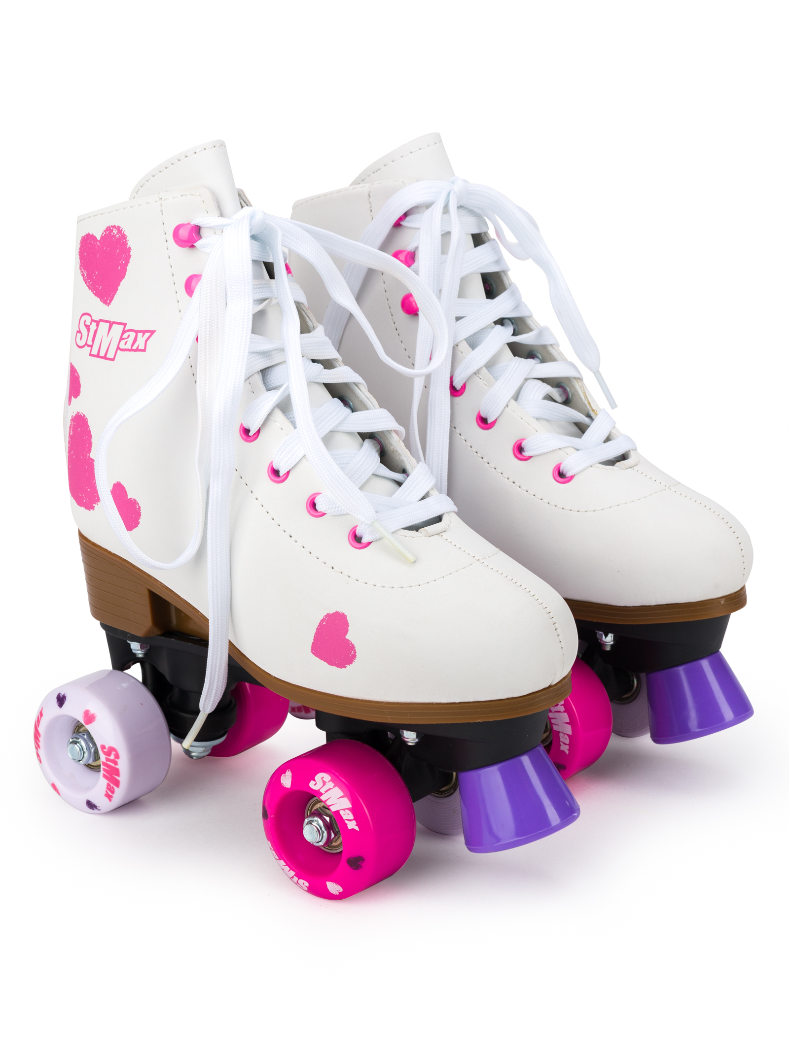 Роликовые коньки SXRide Roller skate YXSKT04PNHR38 белые с розовыми сердечками размер 38