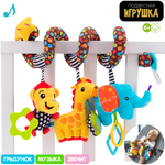 Игрушка подвеска мягкая Zeimas спираль Змея музыкальная с прорезывателем и погремушкой
