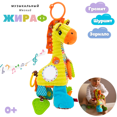 Яркая, развивающая, музыкальная игрушка подвеска "Жираф Алан" станет верным другом малыша.