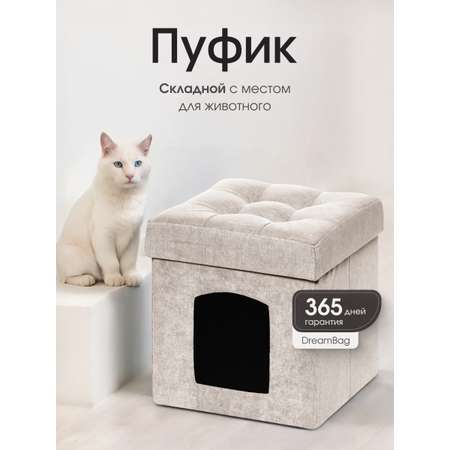 Пуф DreamBag складной для животных светло-бежевый велюр
