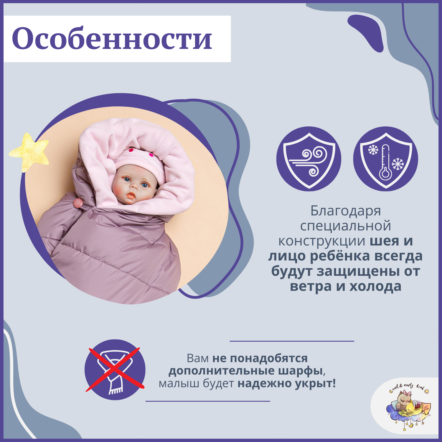 Осенне зимний детский конверт для малышей с первого месяца жизни подойдёт как для выписки из роддома, так и для долгих прогулок в коляске.