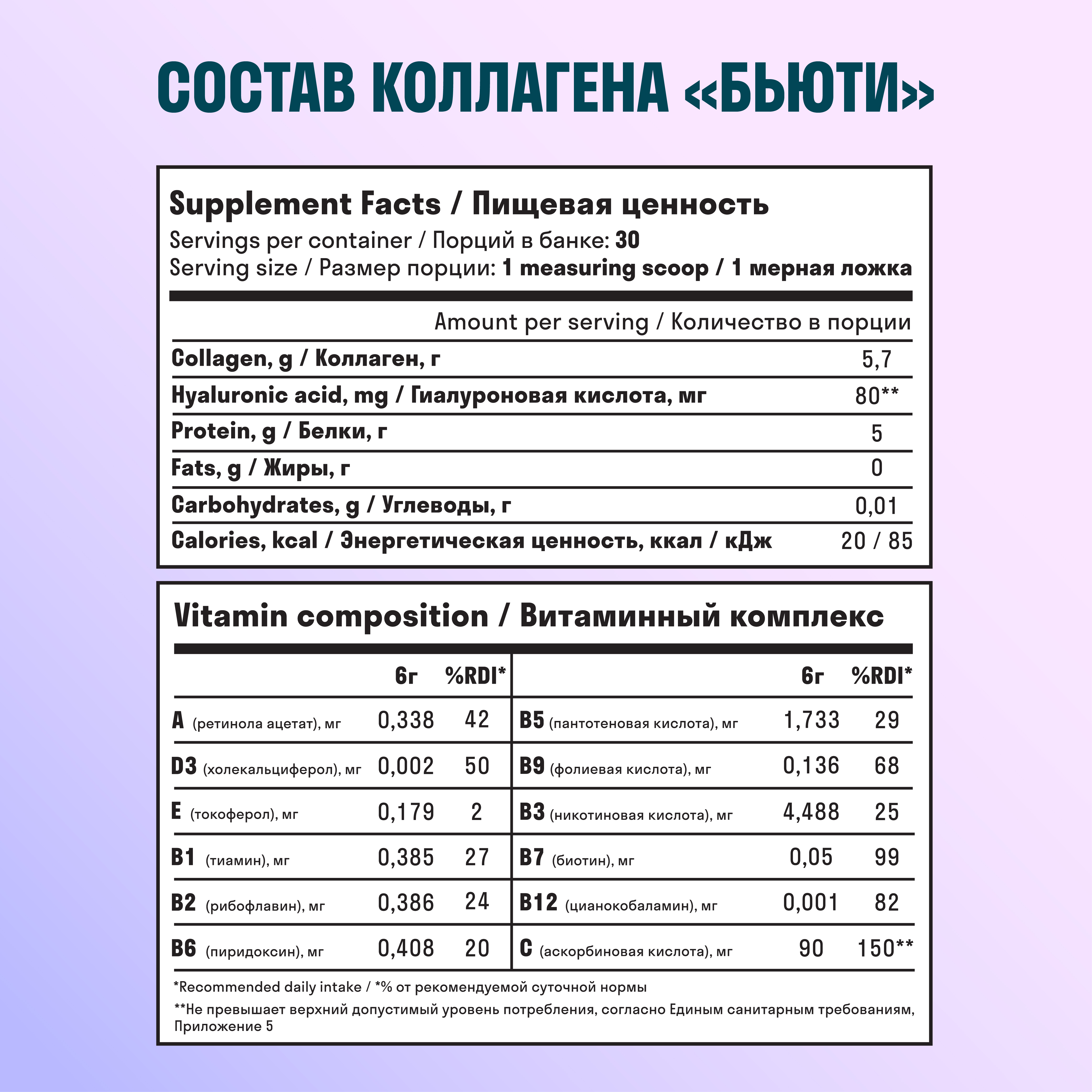 Говяжий пептидный гидролизованный коллаген порошок со вкусом кокоса дополнен витаминным комплексом: A, E, D3, группы B, биотином и витамином С. Формула разработана для улучшения состояния кожи лица, укрепления волос и ногтей, поддержки суставов и нормализации обменных процессов у женщин и мужчин.